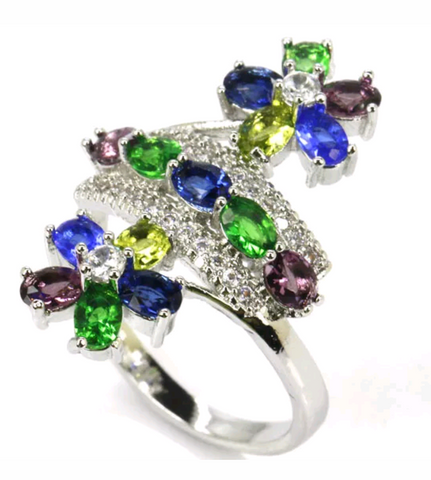 Silver, multi-gem size 9.5