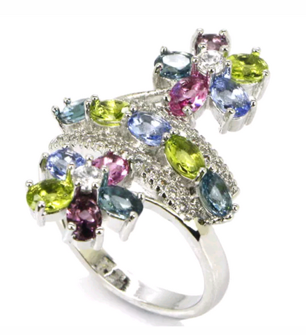 Silver, multi-gems size 7.0